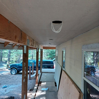 This weekend we were able to get our downstairs deck ceilings covered, shown in the photos. But we still have the upstairs to do, but before we can do the top deck, there is a little demolition to be done and decorative pieces to put in. That’s all in Jer’s wheel-house. My job will be to pray he stays safe while doing it, with no upstairs railing.