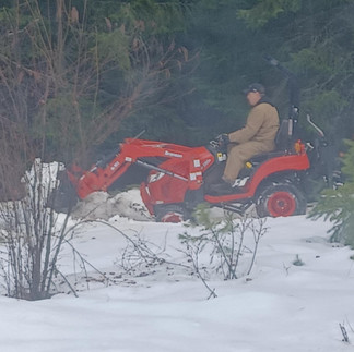 One foot of snow erased any outline of the edges of our drive. Originally we had planned to lock up our tractor way back near the house but on last thought we dediced to move it closer to the road, yet out of view. So thankful we did that. Bicuit, our dog, and I sat in the truck while Jer spent an hour and a half clearing just the front area of the drive. Even with all that work, we couldn't get the truck up the initial slope and had to just park it sideways on the front of the drive.